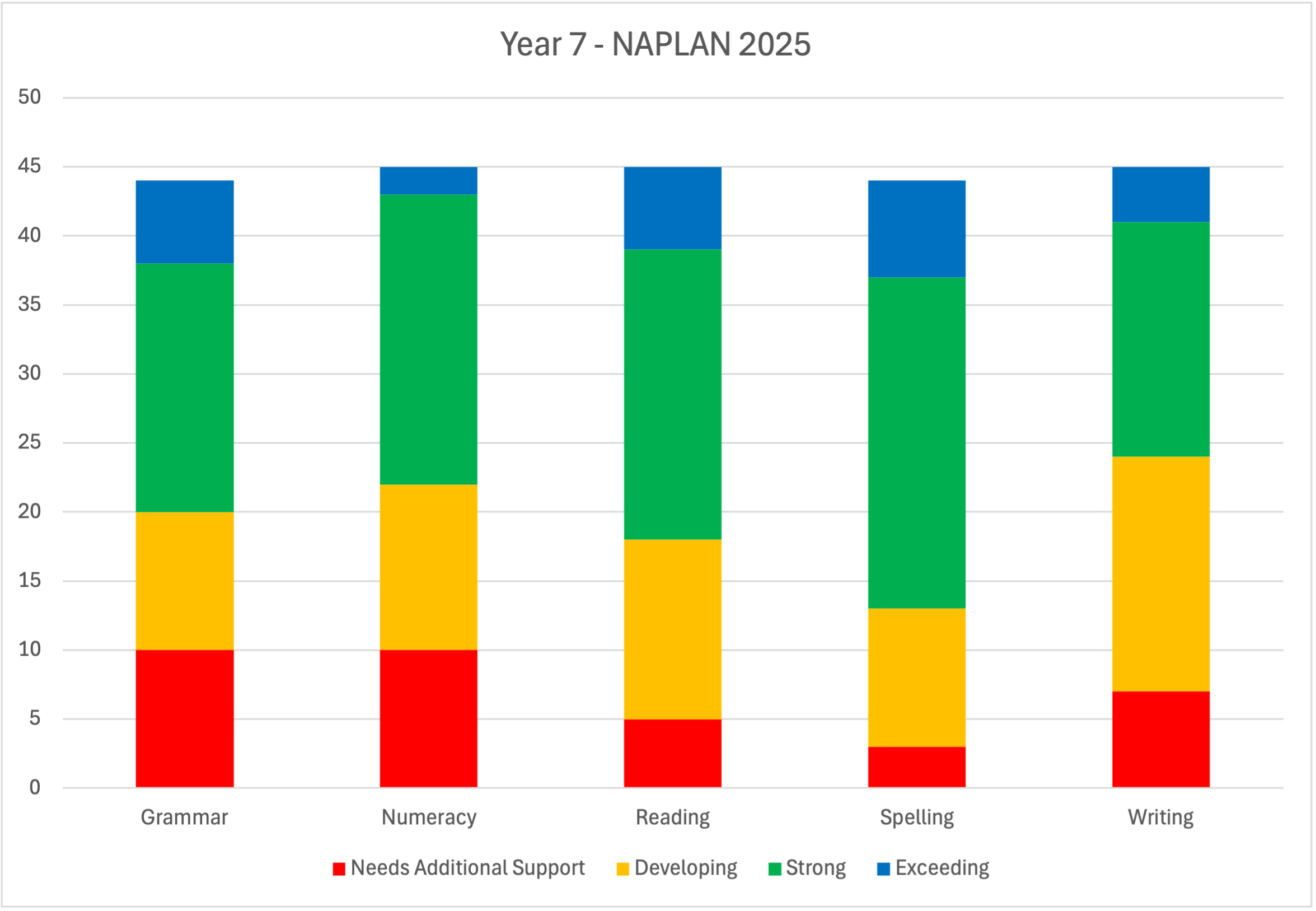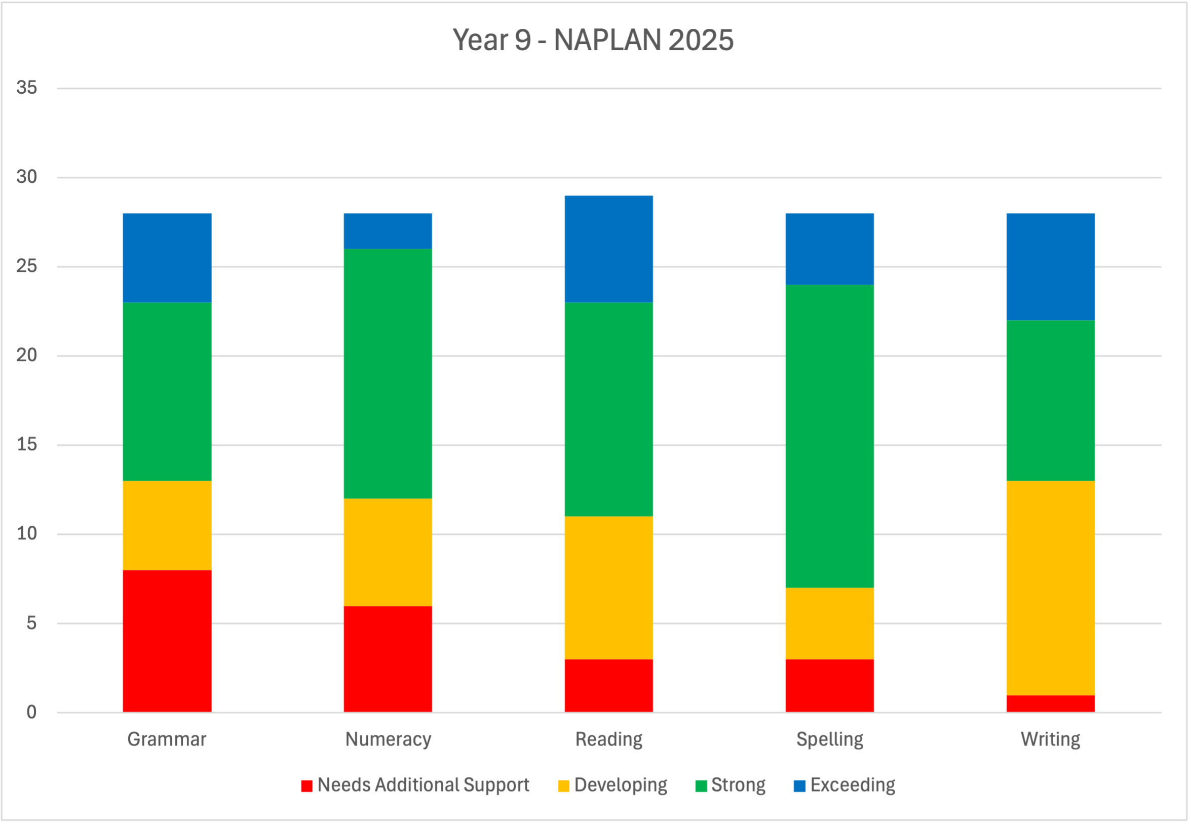 | Reading | Writing | Spelling | Grammar | Numeracy | |